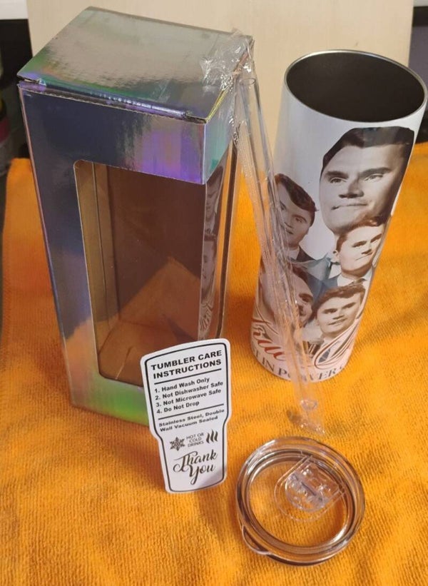 The Charlie Kirk 20 Oz Memorial Tumbler is a stylish and practical drinkware item that is handmade with a sleek black and white color scheme. Made from stainless steel and plastic, this tumbler set includes a tumbler, cup lid, and straw, making it convenient for on-the-go use. The 20 oz tumbler is perfect for enjoying your favorite beverages while keeping them at the ideal temperature. A must-have for those looking for a high-quality and personalized drinkware option.